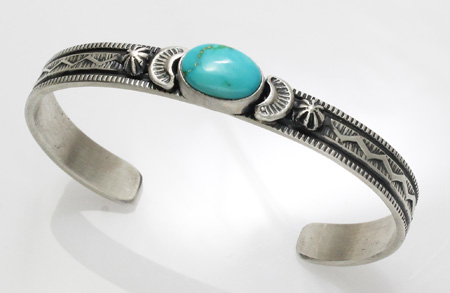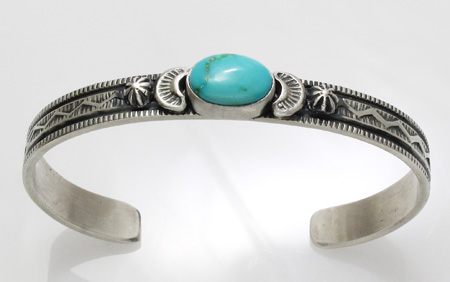 ナバホ族 Melvin Francis ソノランゴールドターコイズ スタンプワーク バングル